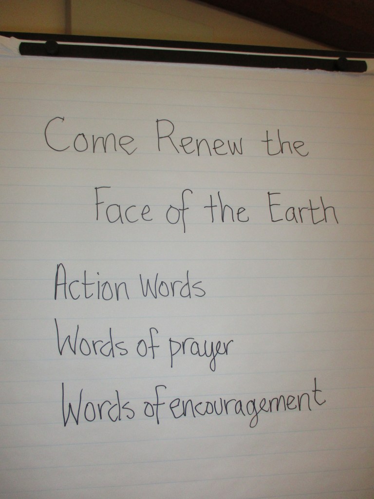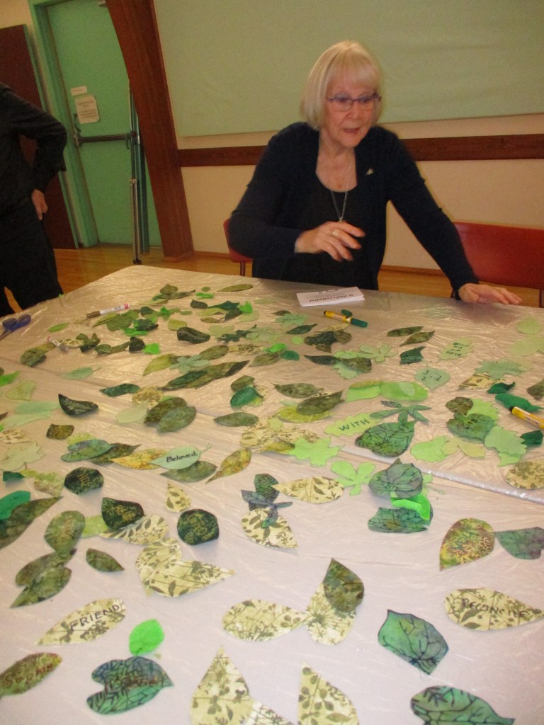 The Parish got a sneak peek into what will be an amazing project! Parishioners were asked to write words that help renew the face of the earth- action words, words of prayer, words of encouragement – on handmade Felt leaves for a big art project that is upcoming.