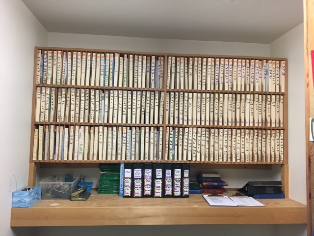 At last! The choir anthems are organized in the choir room. Box like folders for the wall and folders for all 300 anthems are all titled and numbered. Was this a lot of work? YES!!
