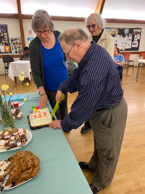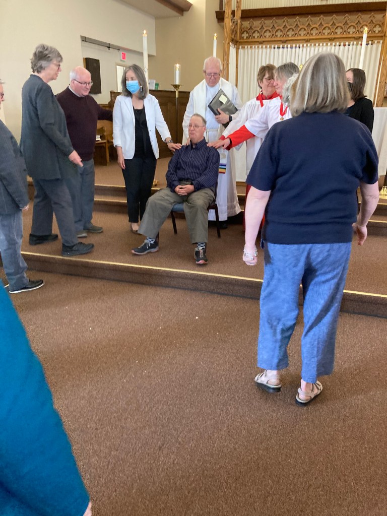 On Sunday April 24, 2022 we said good bye to Tony as he goes off to a new adventure in Surrey. As is tradition Rev Len Fraser invited all to come up and say a prayer for Tony and lay hands on him. There was even a cake for him at coffee hour!