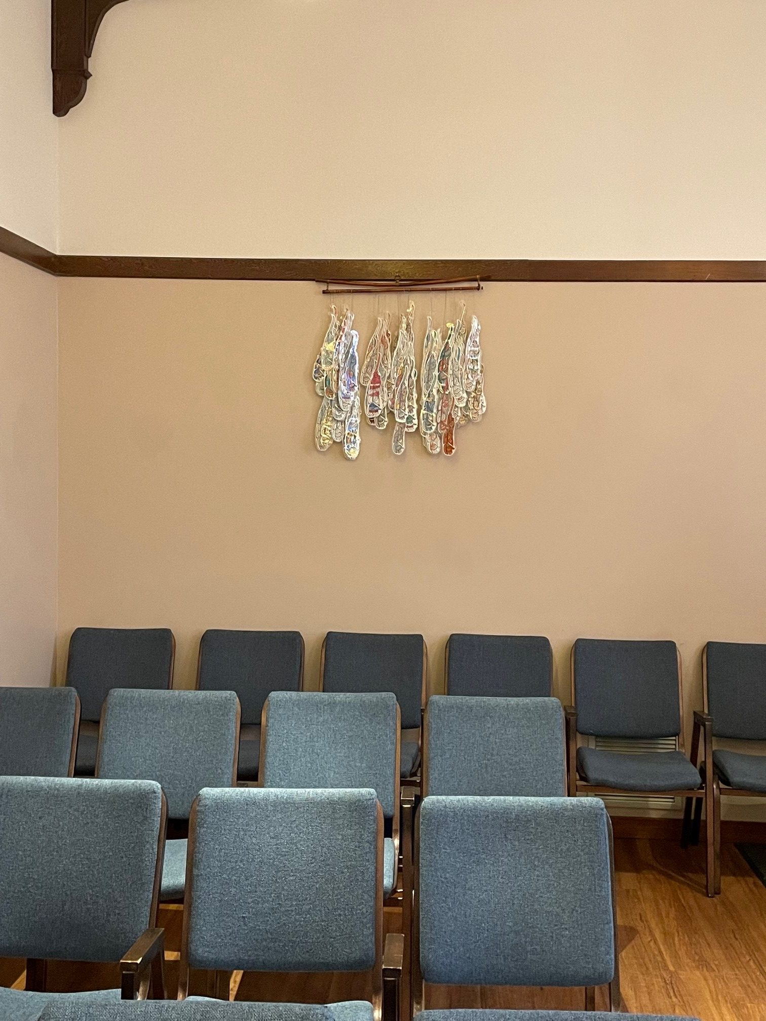 In July of 2021 the Cathedral hung a display of feathers outside that had been coloured by congregation members to acknowledge and remember the discovery of the unmarked graves of 215 children at the Former Kamloops Residential School Site.