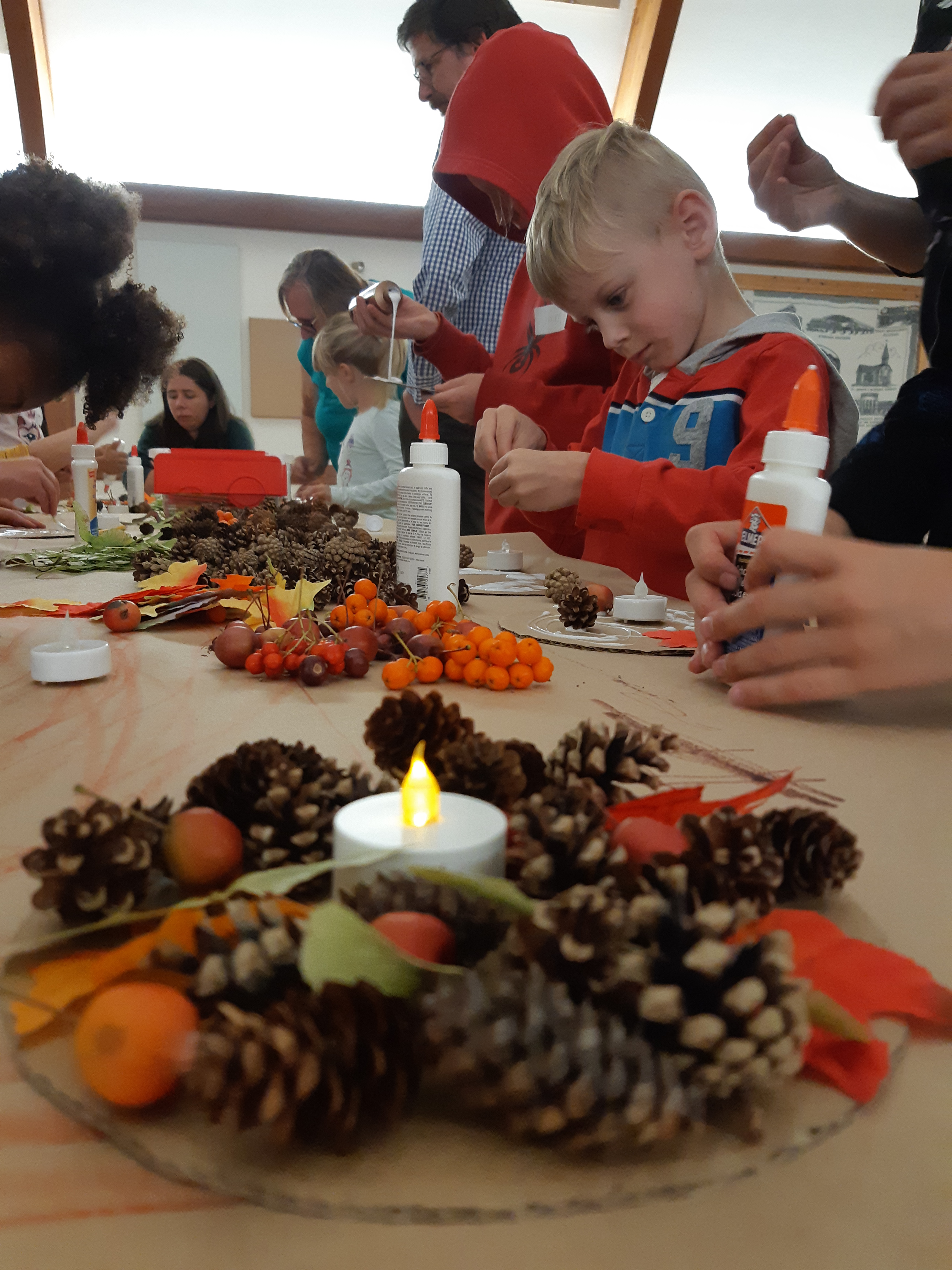 Friday Family Food and Fun restarted September 16th with a celebration of autumn. Six families joined the volunteer staff for dinner followed by games, stories, songs, and crafts. The children made table centres from natural fall materials and also a small crow and scarecrow. Fun was had by all. Watch for information about our October event, a Hallowe’en party!