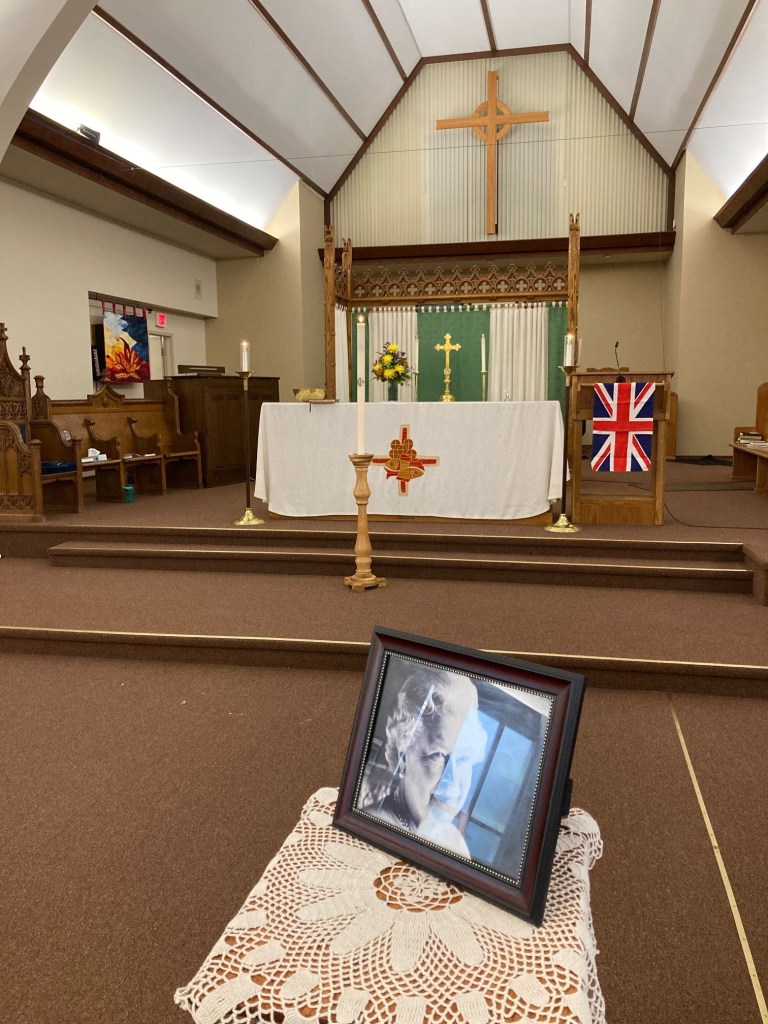 Bishop Jane lead a service of thanksgiving for the life of Queen Elizabeth II on Sunday September 12th. People were invited to sign the guest book and participate in prayer. Accompanied by the musical gifts of Pat Rustand the congregation sang a selection of hymns that honoured the Queen’s special moments.
