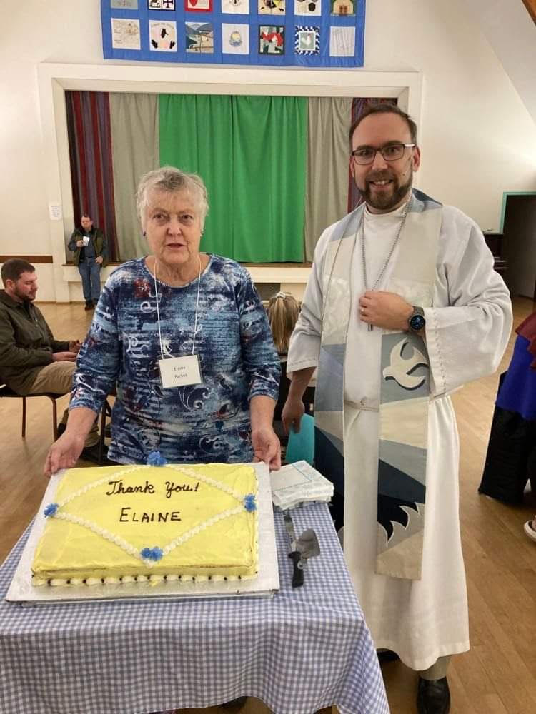 Elaine Parkes was thanked and celebrated during coffee hour following the 10 am service on November 27th. Elaine temporarily stepped into the role of office administrator in September following Claire Tosoff’s move upstairs to the Territory of the People office. Elaine managed the office with cheerful efficiency during the search for a permanent office administrator. We are grateful for her willingness to take on this important role in our time of need.