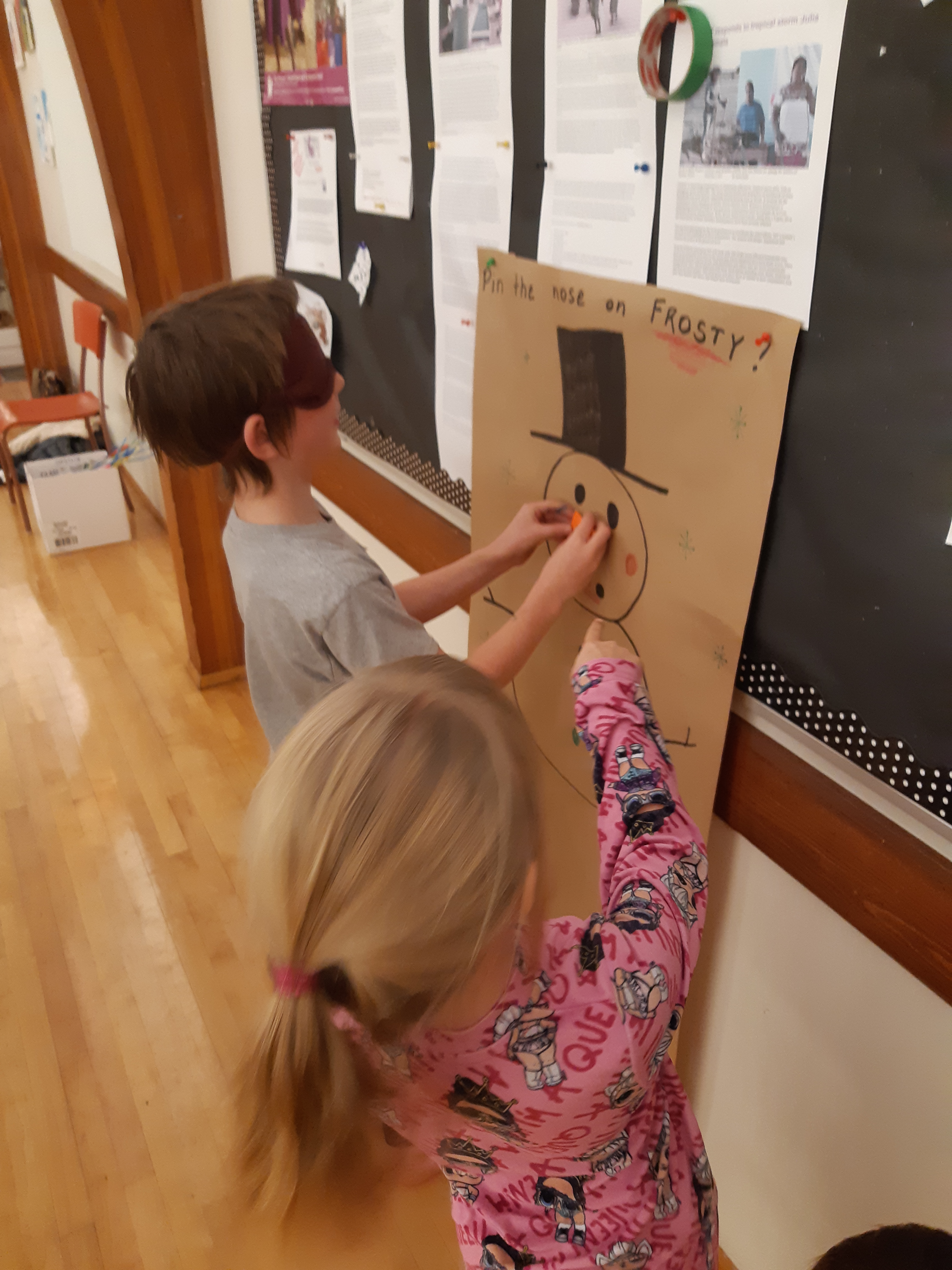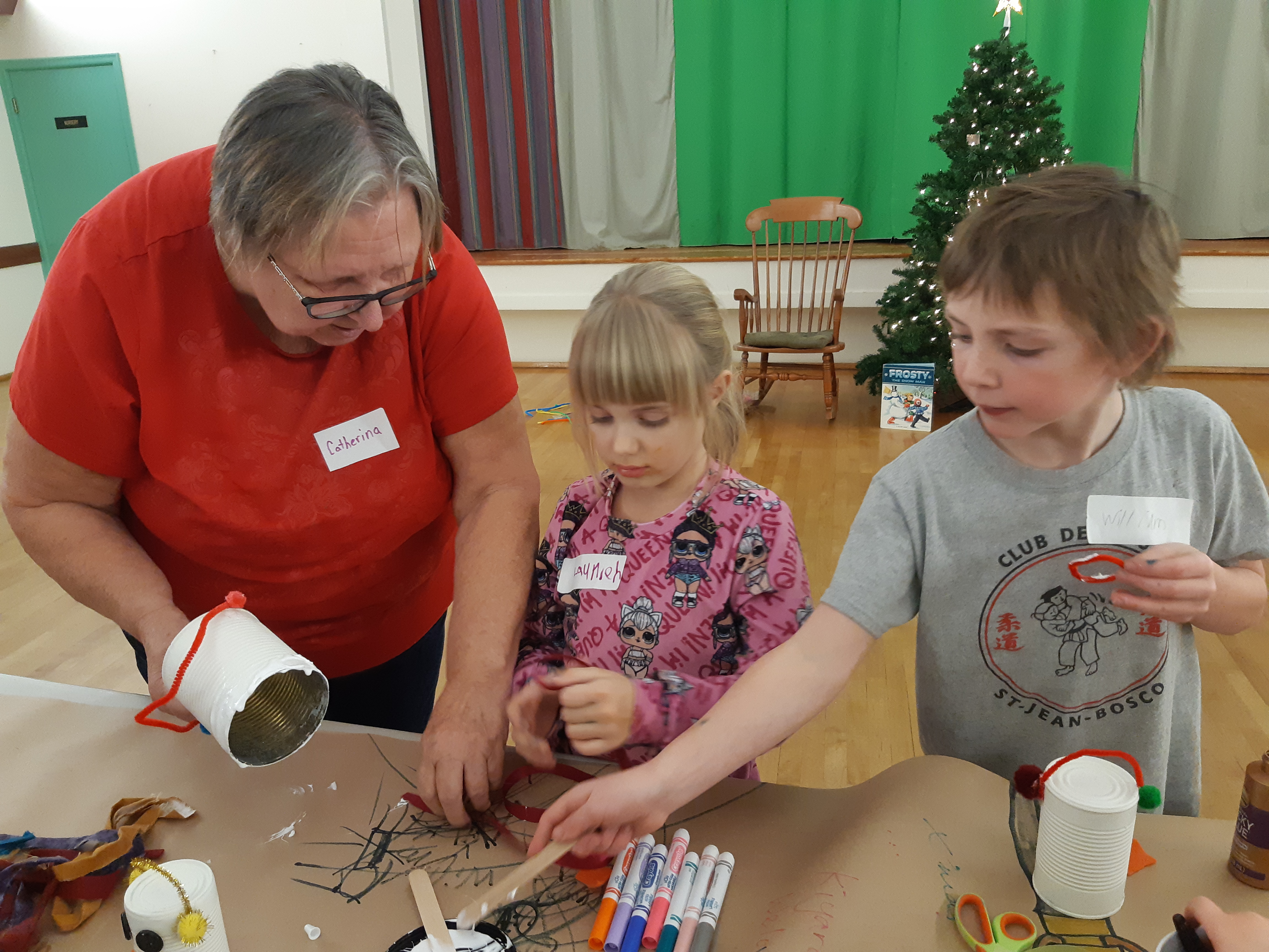 We had 8 families – 16 children and 22 adults for dinner and activities on Friday December 16th. The children made snowman decorations, listened to the story of Frosty, and played pin the nose on the snowman. They decorated gingerbread men and we had a visit from Santa.