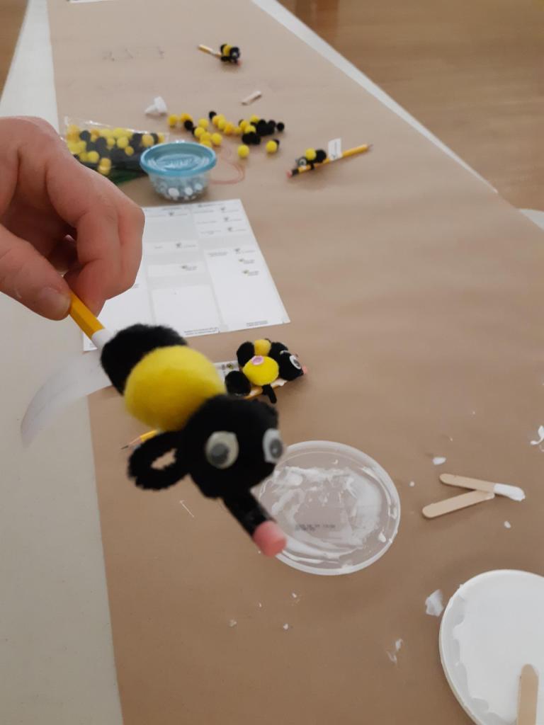 We made a pompom bee with the message Bee a Friend and learned one of two ways to make a friendship bracelet.