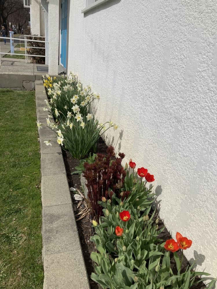 Outdoors, the daffodils and tulips are a cheery site. They brighten these cloudy days. Many thanks to our dedicated gardeners – Roger, Nora and Lesley!
