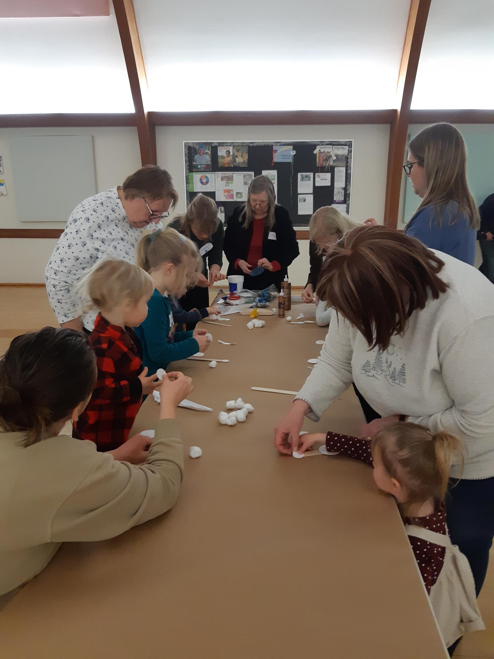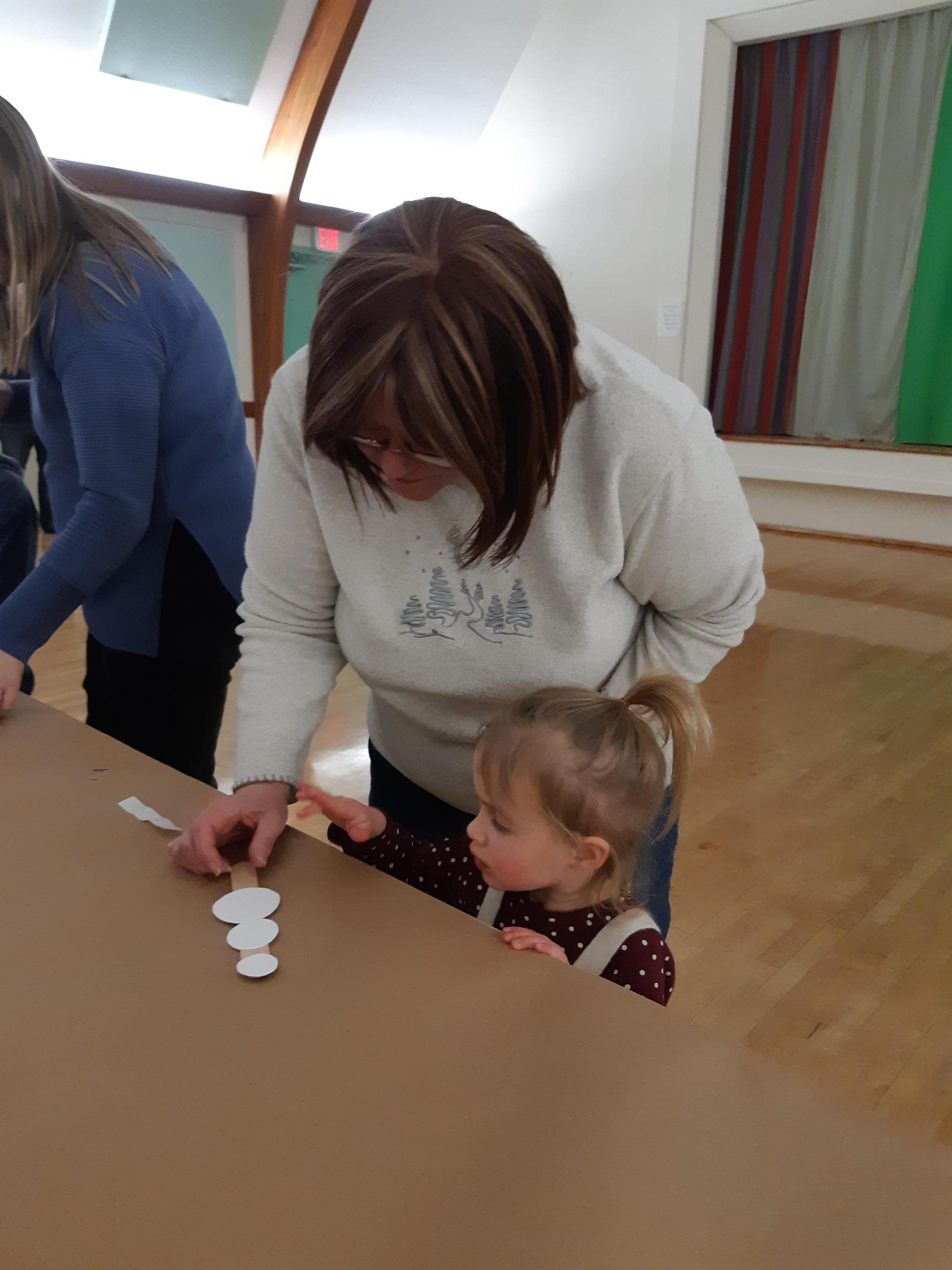 Then the younger children heard a story about snowmen and made a village of snowman stick puppets.
