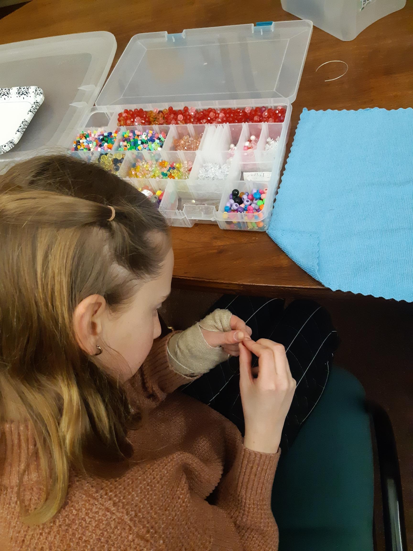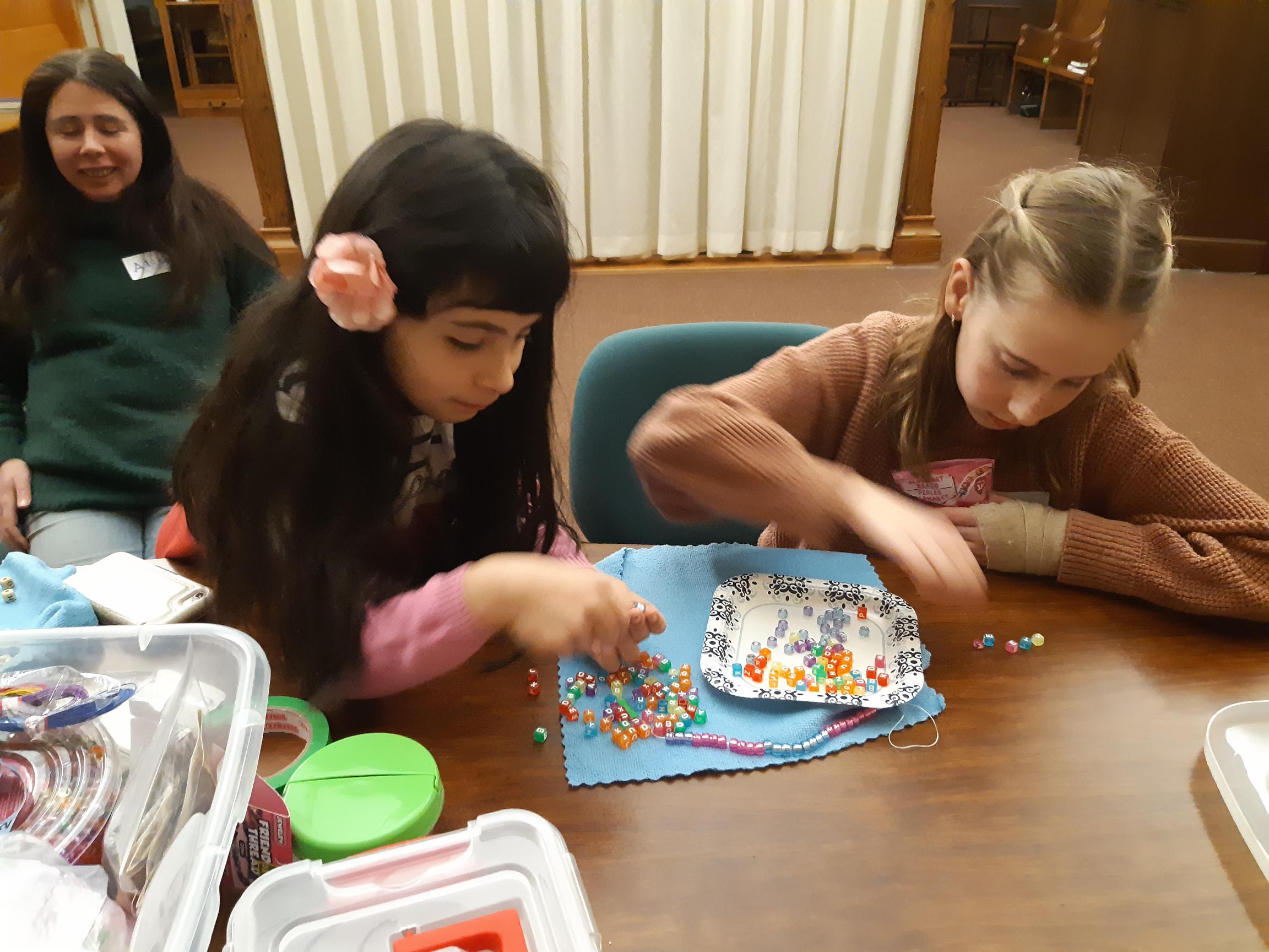 While most of the younger children left early, one remained to make a beaded snowflake.