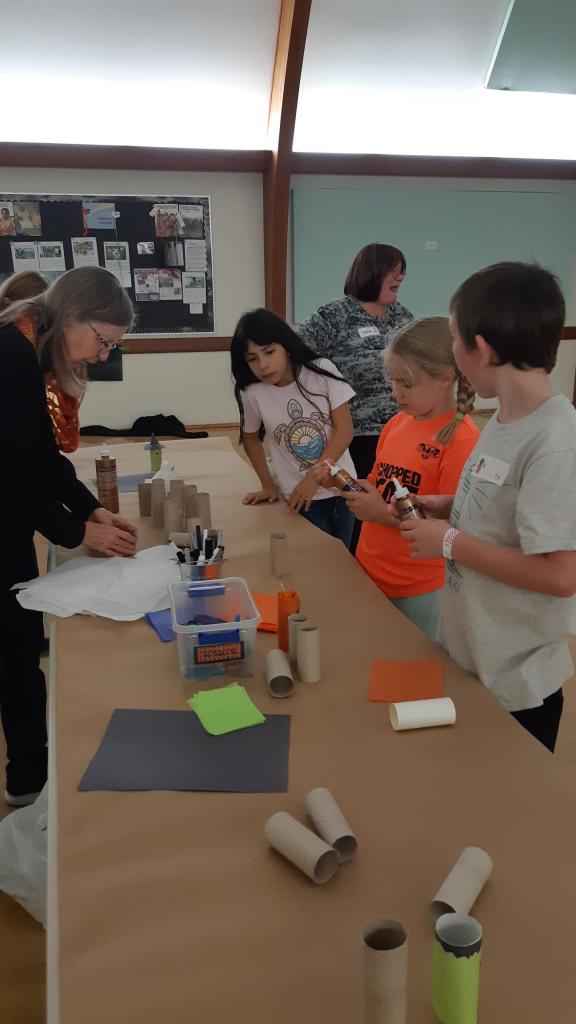 Four families came for the first gathering of the season. Following a delicious dinner of pasta, veggies and ice cream, the children’s activities started with a game of trying to toss “eye-balls” (pingpong balls) into some bowls. It proved to be very difficult, but lots of fun for all ages with balls bouncing everywhere.