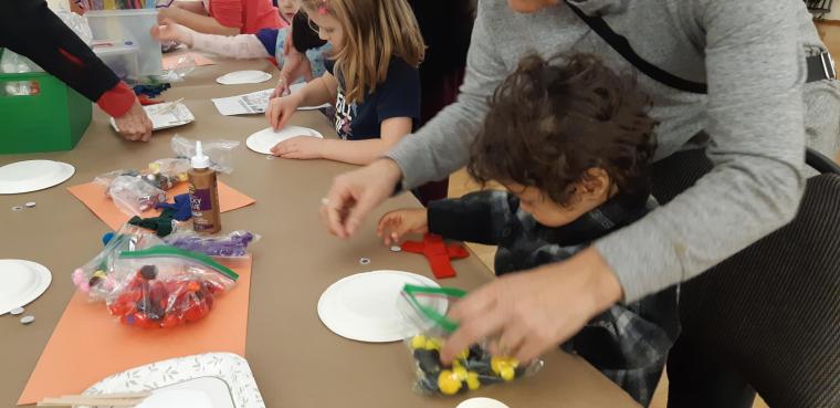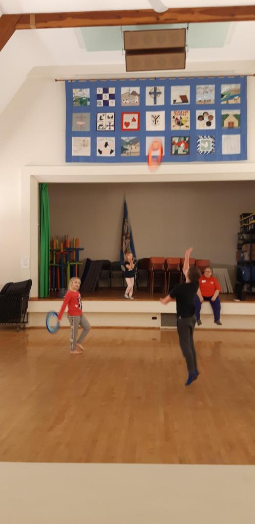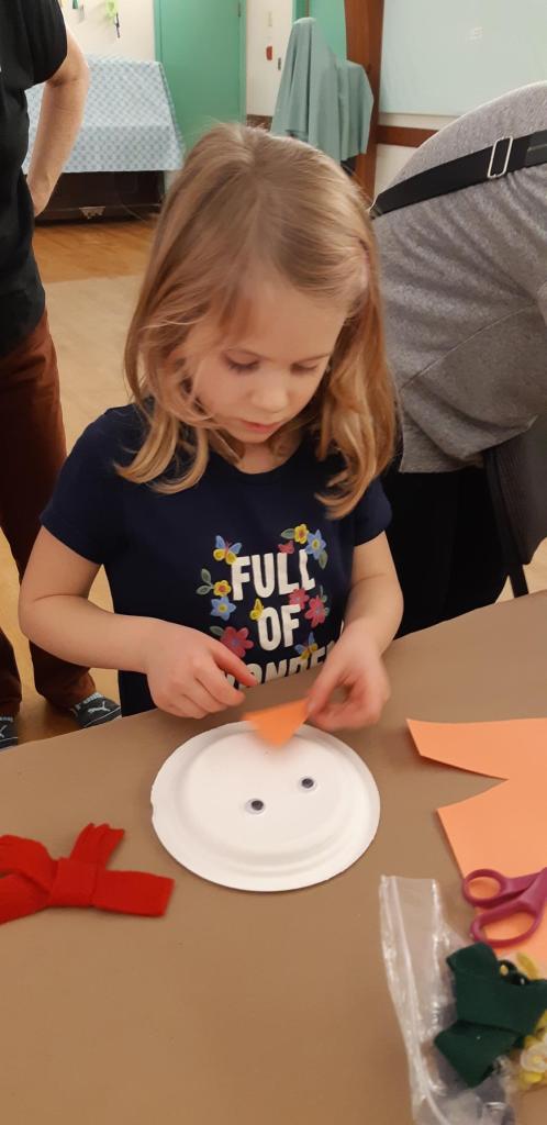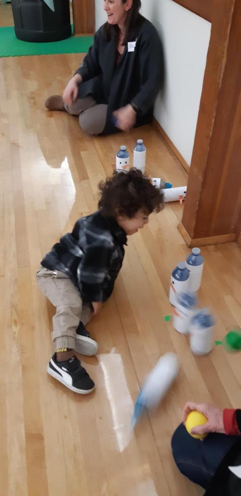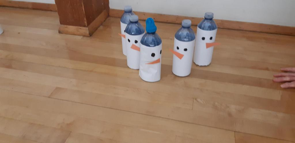 A small group of about 24 people ( 6 families plus volunteers) gathered on January 17th for dinner and activities. The children played an active game involving tossing frisbee-like rings in the air, followed by snowman bowling. Both were big hits.