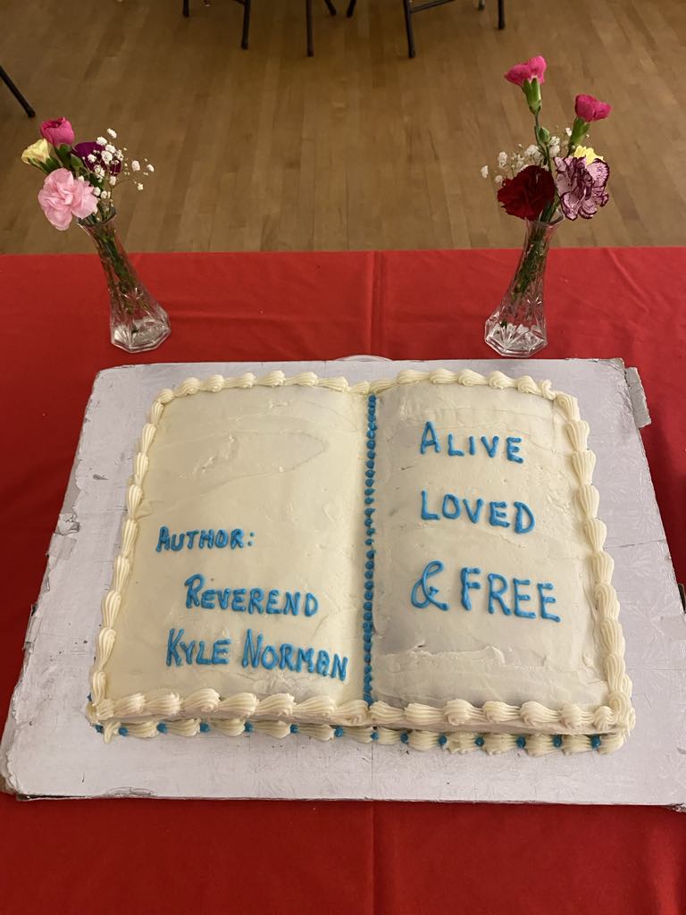 On February 2nd, following the 10 am Service, the congregation was treated to a reading from the Dean’s new book ” Alive, Loved and Free: Finding Jesus When Faith is Hard” The book was launched February 1st and is now available on Amazon. The congregation joined in celebrating with Kyle with a beautiful cake made by Rae Long.
