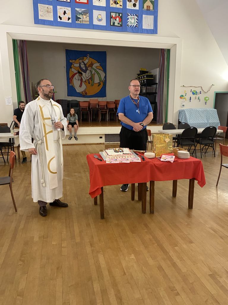 The party after the service included a banner, 50 cards, cake and best wishes to Rodney.