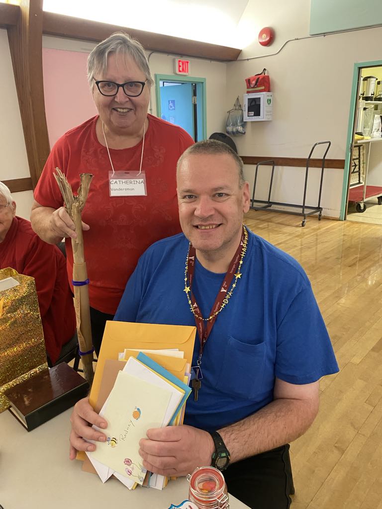 On June 15th, we celebrated with Rodney his 50th birthday. Rodney is well know for his role as a crucifer (one who carries the cross during the procession into the church), but he also helps weekly with setting up and taking down the tables for coffee time and many special events.