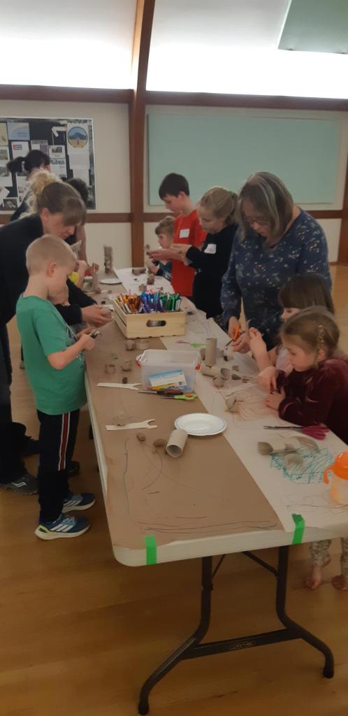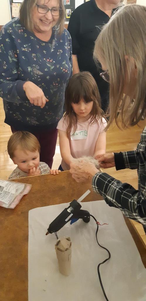 For our craft, we made squirrel figurines/puppets from toilet paper rolls. It was a very challenging craft for the younger children and required assistance from their adults. The end result was enjoyed by the children.