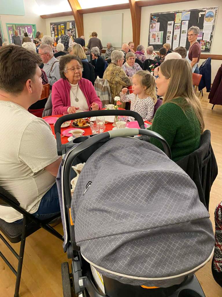 Young (Noa, 1 week old) and old (94 year old person) and all ages in between gathered on Saturday January 31st for a very successful carnation tea.