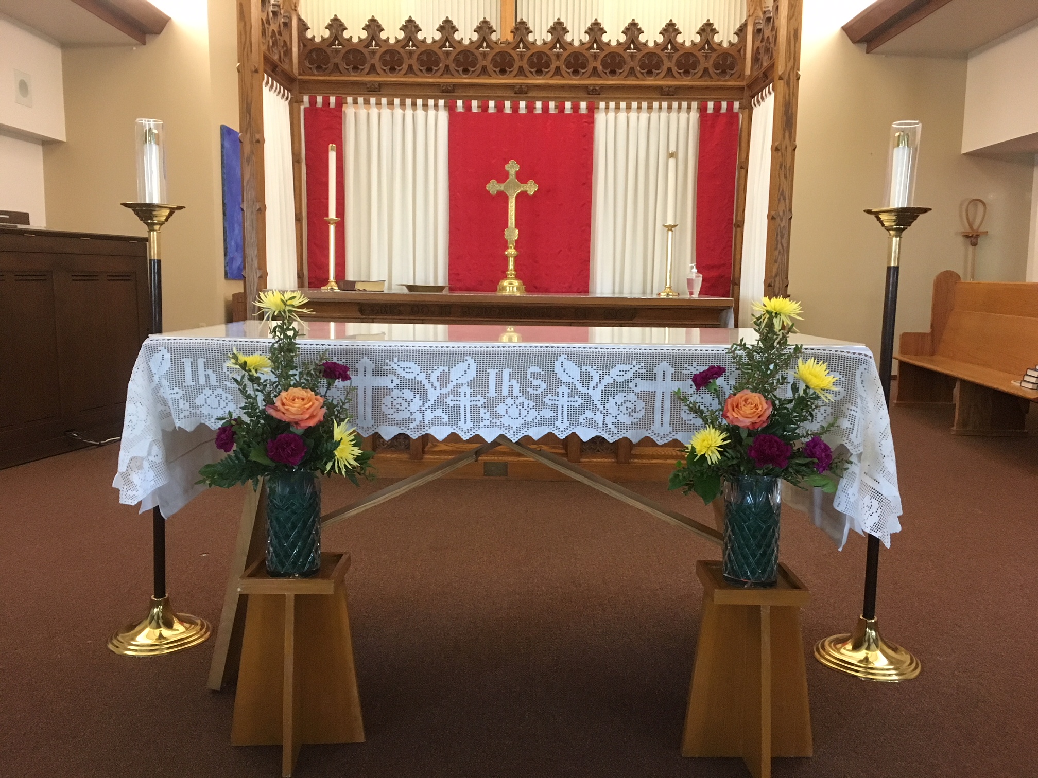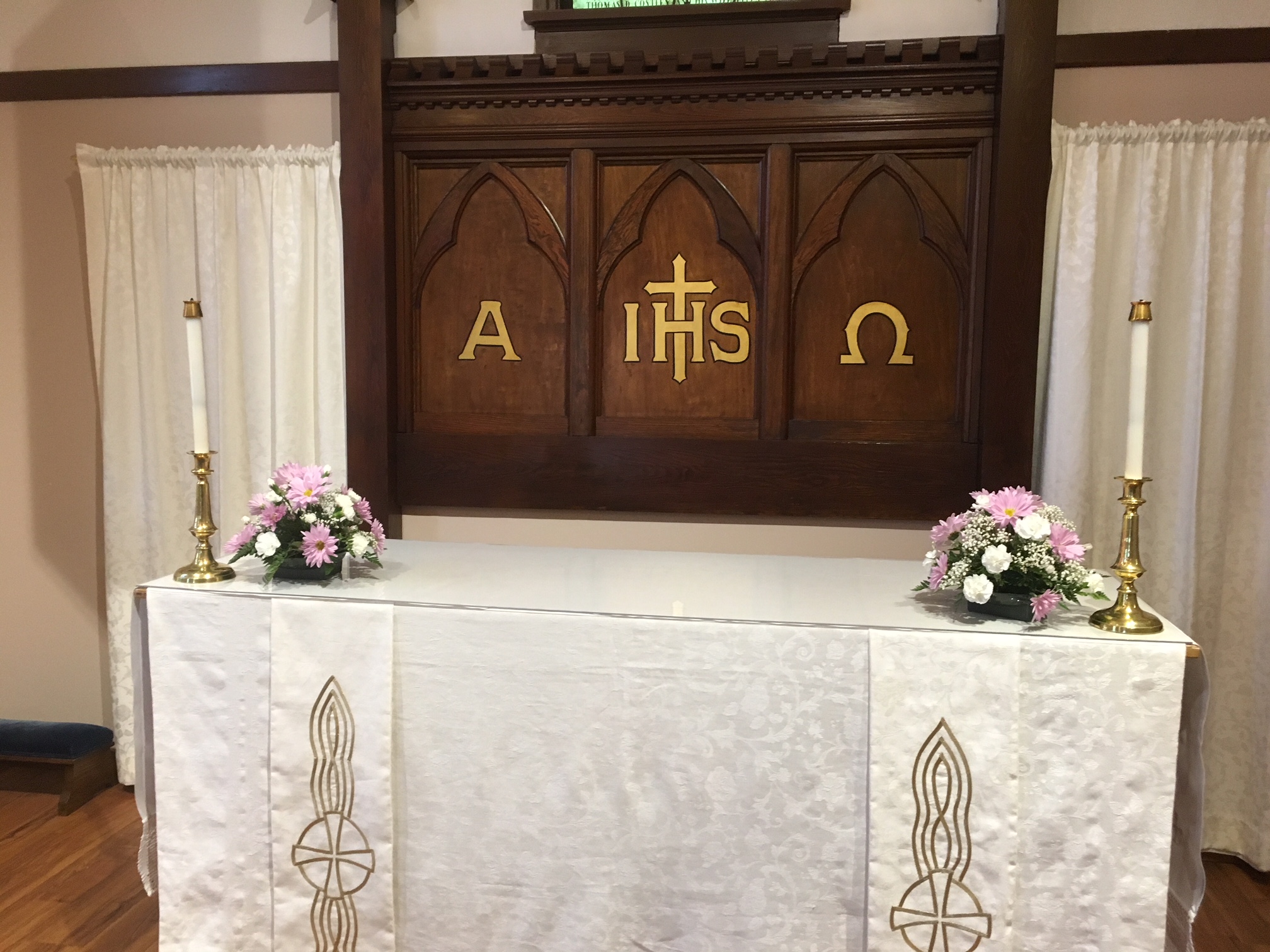 The Altar Guild is a group of parishioners who work in pairs in a rotation to prepare the Altar, for the weekly services at both altars and for other special liturgical events. It is the Altar Guild’s responsibility to prepare the linens and the silver to look their absolute best, washing, ironing, folding, buffing the silver, changing the hangings to the appropriate colour and ordering the flowers for memorials and special occasions. We also pull together when it is time to decorate for Thanksgiving, Christmas and Easter. The guild meets as a group five times a year.