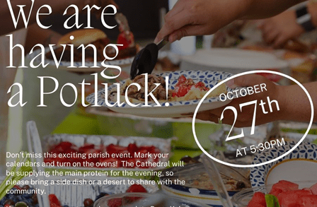 Join us for a Potluck Supper Friday October 27th at 5:30 pm in the Cathedral Hall. The Cathedral will be supplying the main protein for…